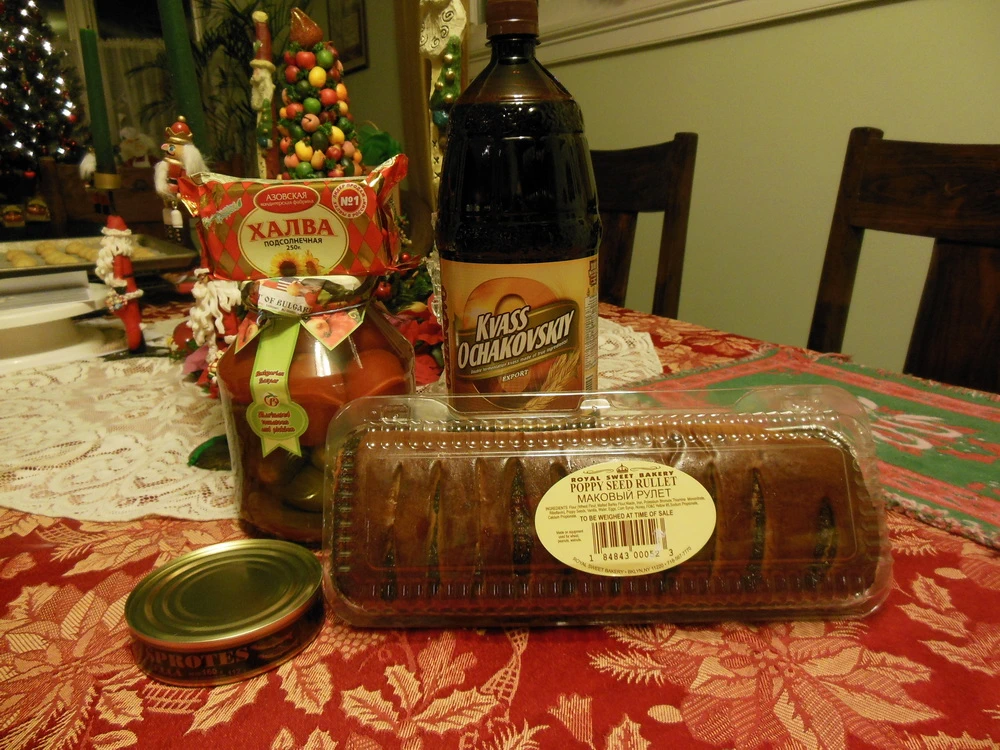The Sunday Before Christmas, he and his wife came in with a shopping bag. In it, he said, were the things every Russian family has at Christmas!