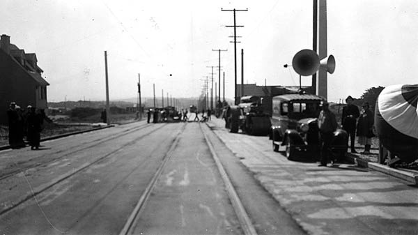 The old house that was torn down can be seen on the right. The trolley wire pole across the street where the folks in the middle of the street are is where our house was built in 1952.